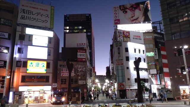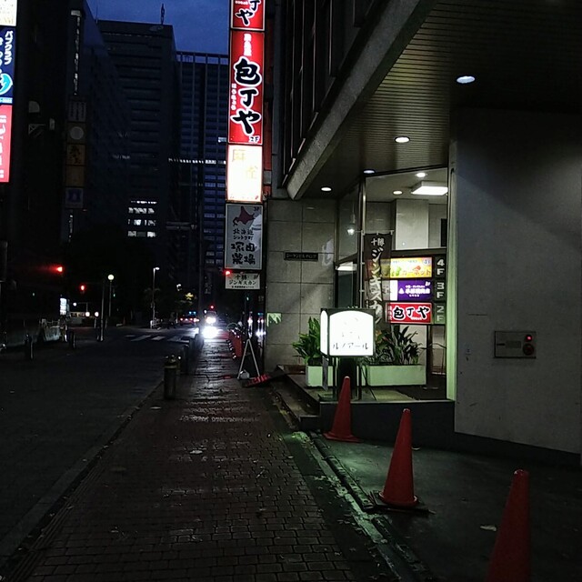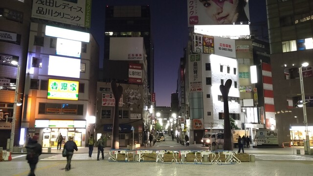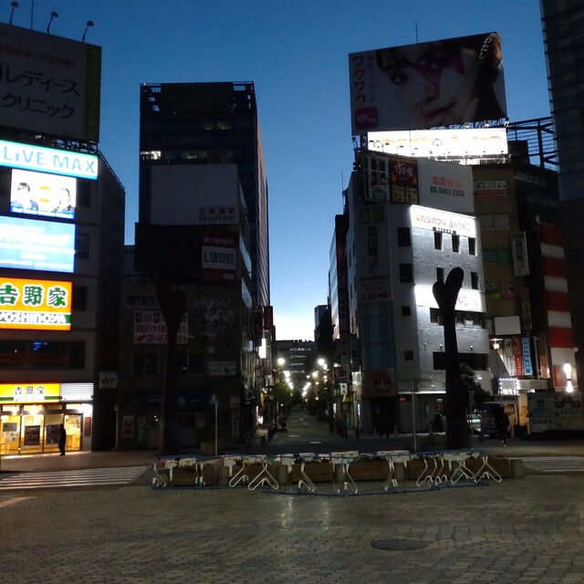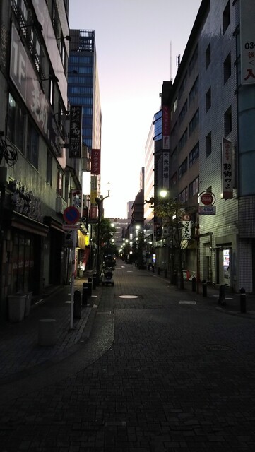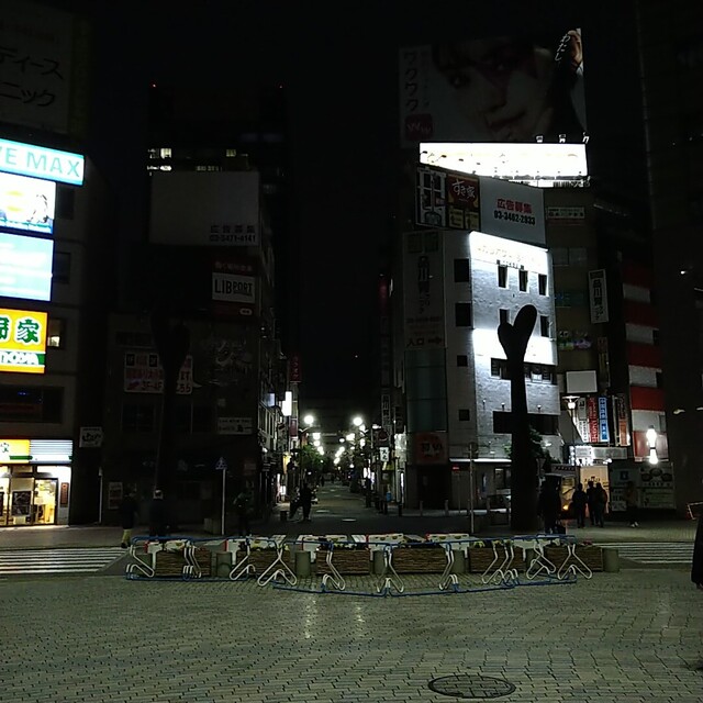 相変わらず営業してない飲食店の看板が煌々と灯っている