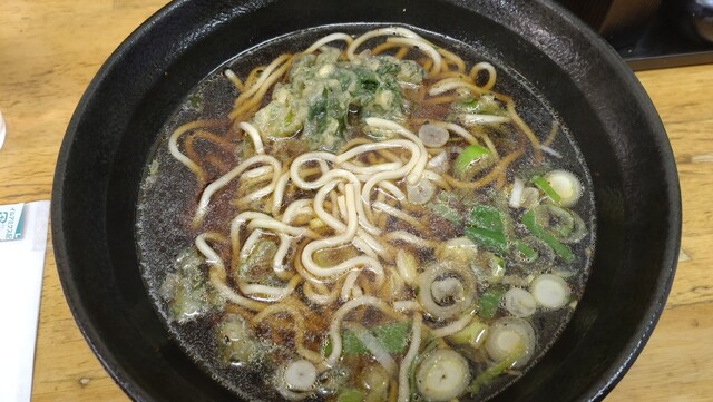 ネギがお汁の旨味に力を添え、七味が香りを添える、そんな最高の朝そばがいただける