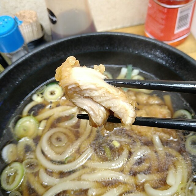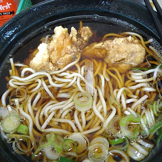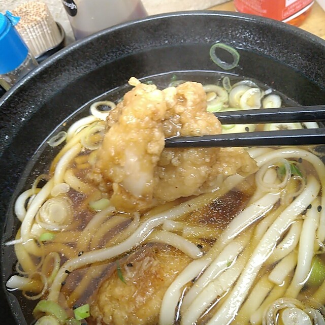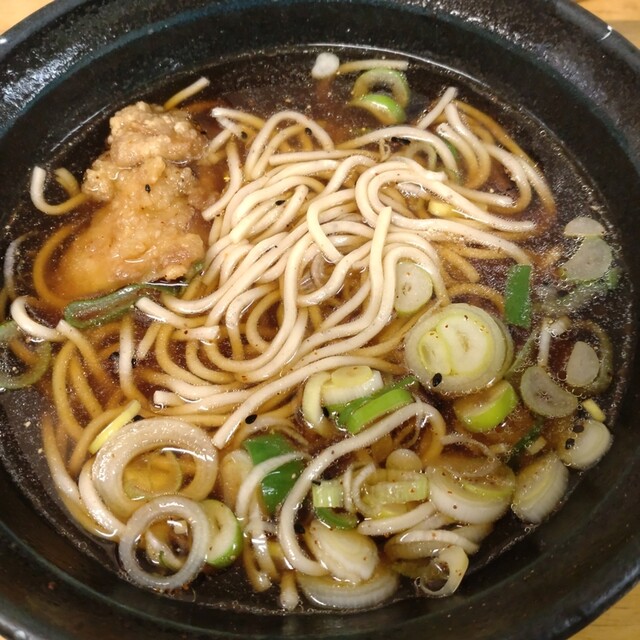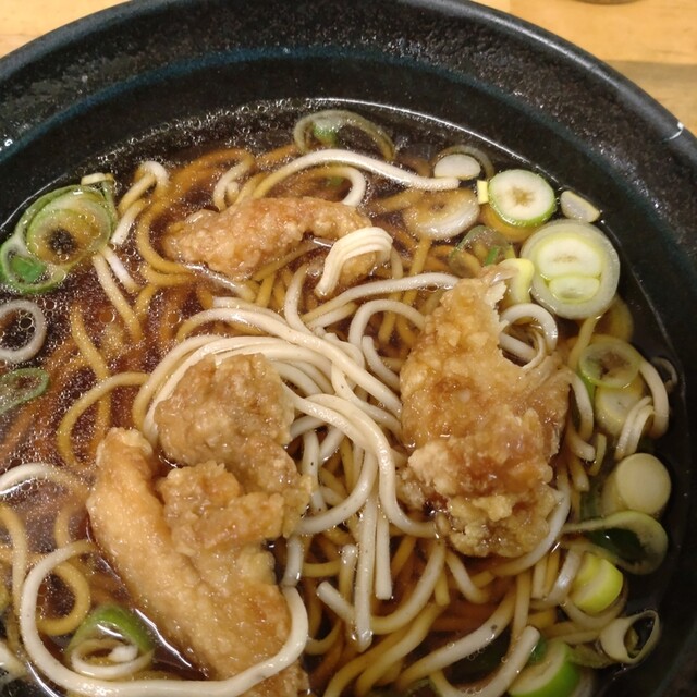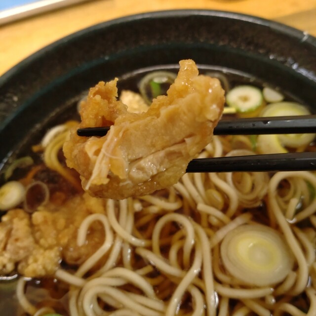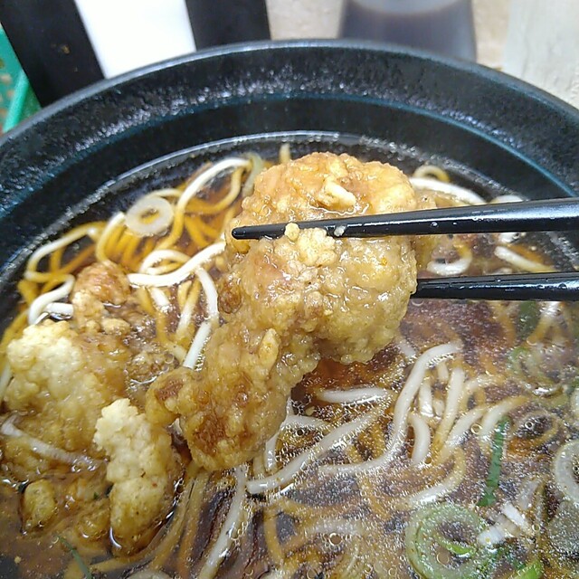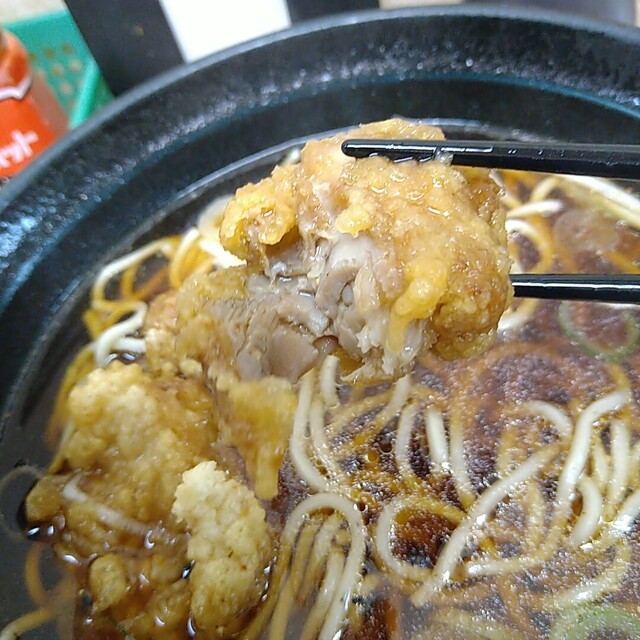 温かいそば、天ぷら小1個、\370でから揚げ!