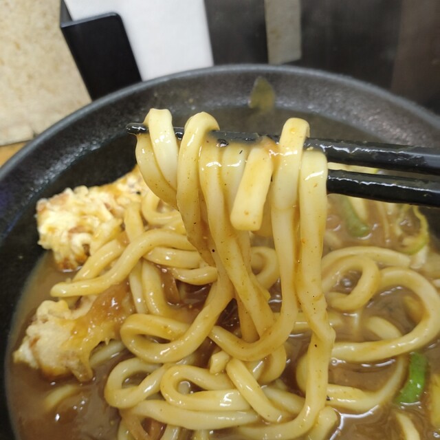 まずはうどんをカレーに馴染ませます