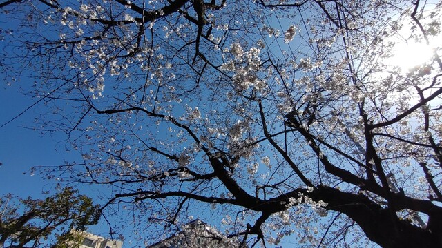 桜の木も枝打ちされて寂しいね~