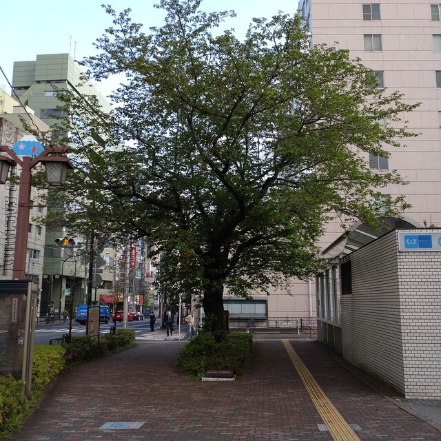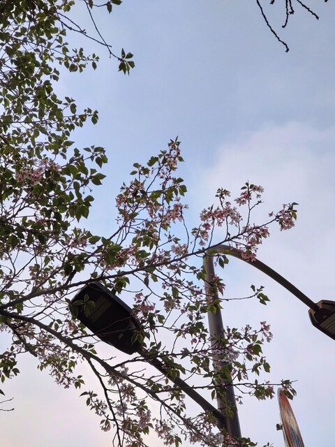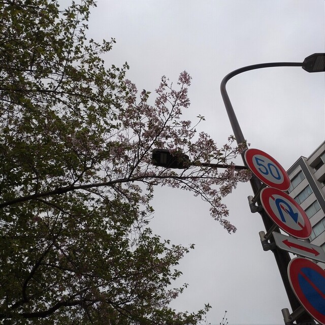 街の桜もスッカリ緑に変化してるけど、交番前の桜はまだ咲いてる、頑張ってる枝もあった