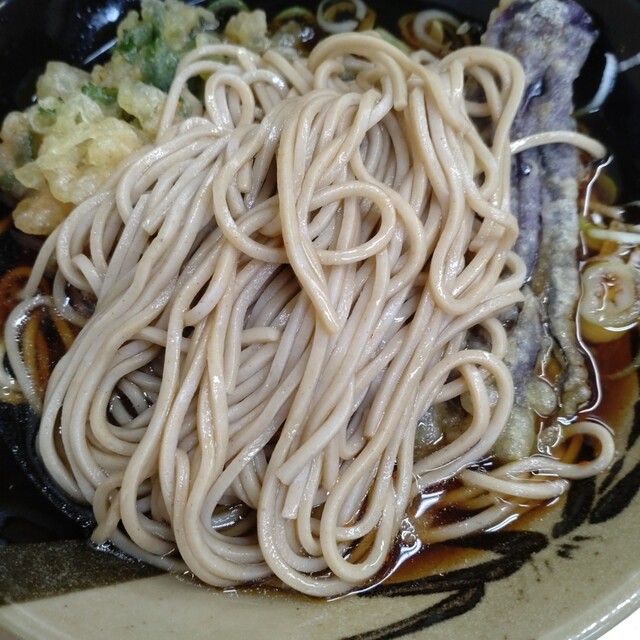 おそばは茹で置きではなく、乾麺のような真直ぐなそばを適宜茹でている