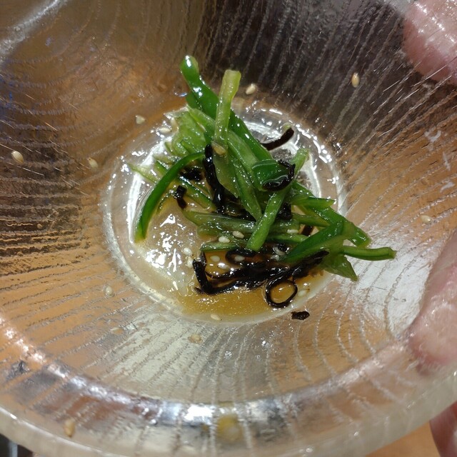ごま油と和えてあって塩昆布をよく混ぜると塩っ気が回るんですが、