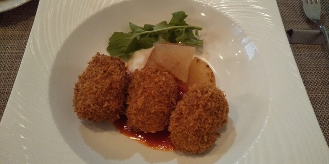 4品コースの方が5品コースよりメインの量は多くなるようです。(友人夫婦が頼んだクリームコロッケの数が違いました。)
