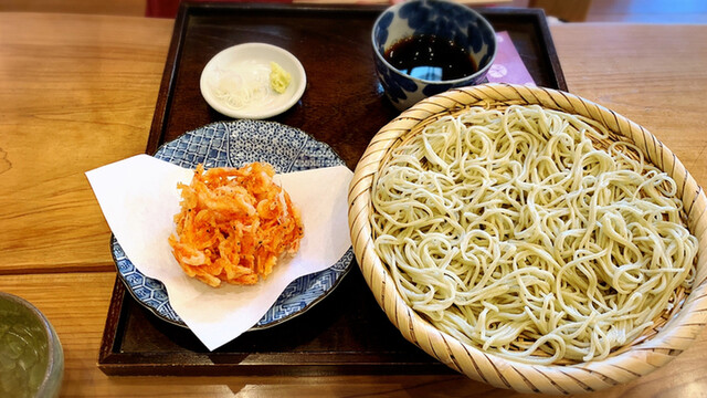 野菜の天ぷらと桜海老の天ぷら そして粗挽きと細かくひいた蕎麦が選べますが、野菜の天ぷらには2種盛りをオーダー