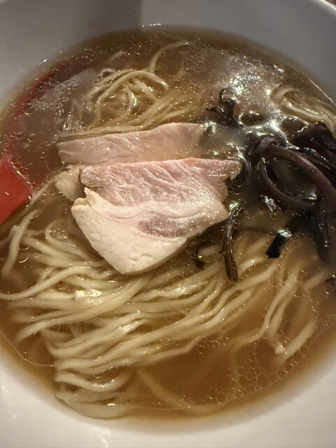 〆の源流ラーメンは透き通ったたスープに少量の麺。チャーシューも質の良さげな脂身がうまい。他余計なものは入っておらず、スープも飲み干せる位あっさりしている。ヘルシーな感じがたまらない。