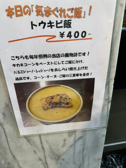 中待ちが6名あり、さらに10分待ちでやっと着席。同時にとうきび飯から提供です(〃ω〃)
