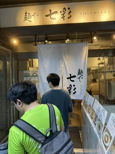 雨が降る中、東京駅から八丁堀まで歩いてすぐ行列を発見^ ^今日はこちら「麺屋七彩」さんへ。