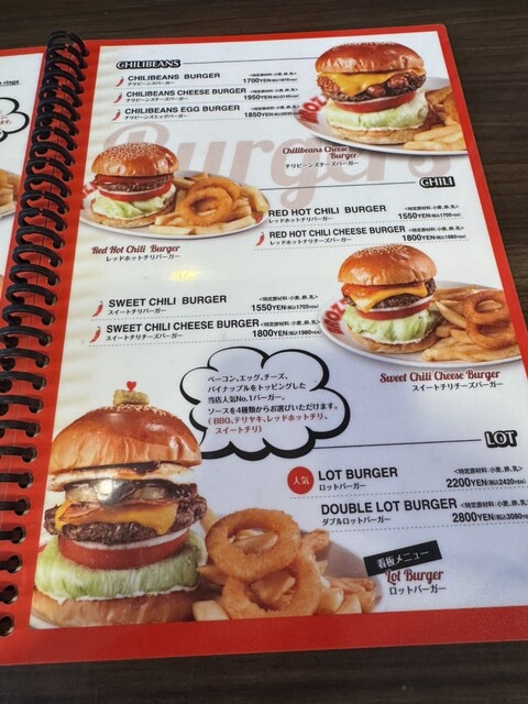 さて、何を食べようかと思案していると、店員のお姉さんからアドバイスで、名物のロットバーガーが丁度25周年記念で5×5の25通りの味から選択出来ますなんて魅力的なご提案があり、迷ってジャークスパイスのアメリカンソースで注文╰(*´︶`*)╯♡