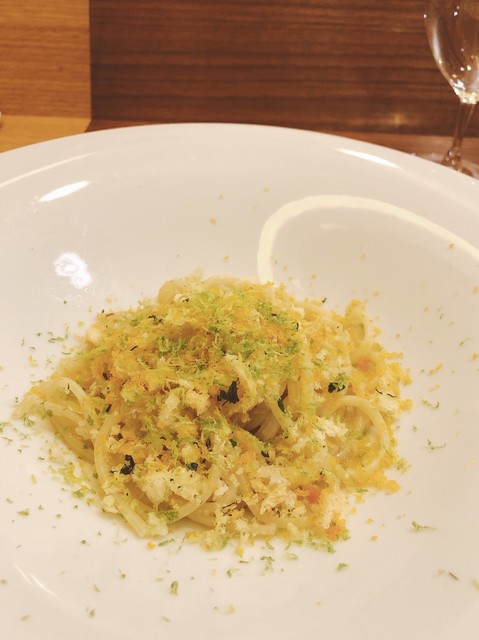 サルデーニャ産カラスミとライム、香草パン粉で仕上げられたこのパスタ。