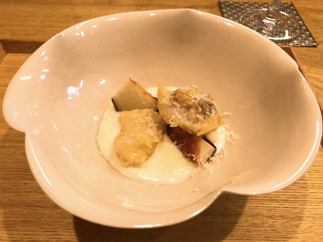 鱗パリパリの甘鯛と里芋(たぶん)。