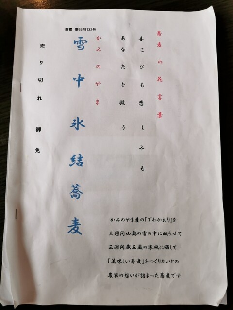 朝に雪中氷結蕎麦の十割蕎麦をお