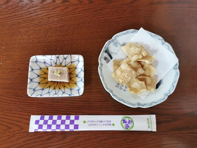 蕎麦せんべいと蕎麦豆腐が配膳❣️