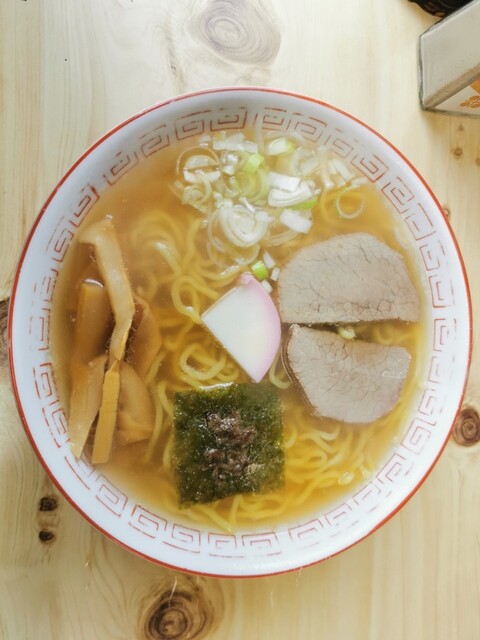 【中華そば】¥650を注文しました。店内は、相席が基本な感じでした。程なく配膳されました。とてもシンプルな中華そばです❣️こちらのお店は、牛骨スープを売りにしている。チャーシューも牛肉のようです!いざ実食する‼️