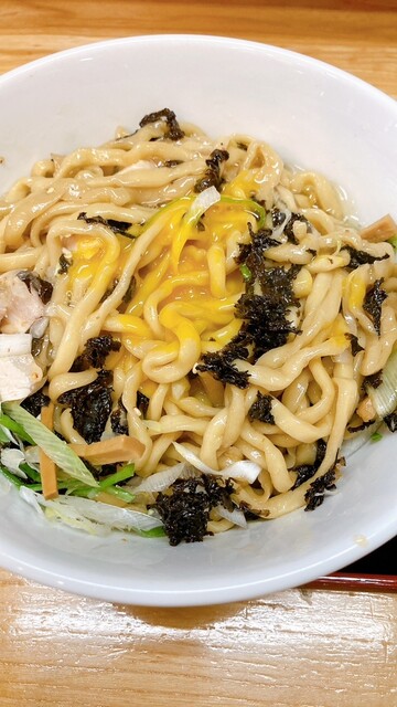 タレと具材のバランスが絶妙です。濃すぎず油っぽすぎず、具材もまぜそば用に細かいもので、まぜれば混ぜるほど旨味が増します。