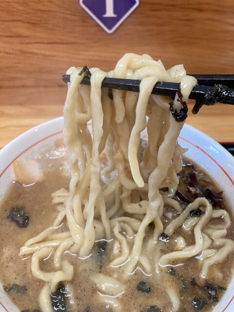 手揉み太麺はモチモチ系。麺はこれでもかというくらい長いです。