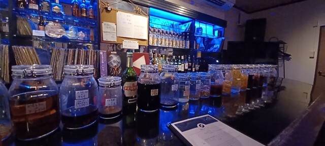 ディスコティックなバーで漬け込み酒を嗜む