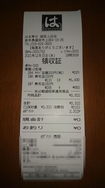 てっきり平日だから寿司は一皿90円で食べられる~と10皿食べたんですが精算後のレシート観てしょんぼりしてしまいました