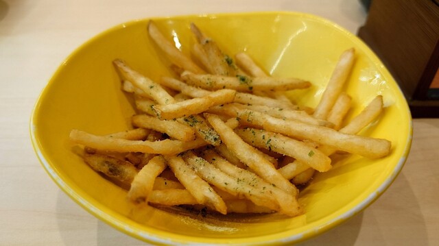 〆には母はプリン、自分はフライドポテトを食べて大満足の夕食となりました