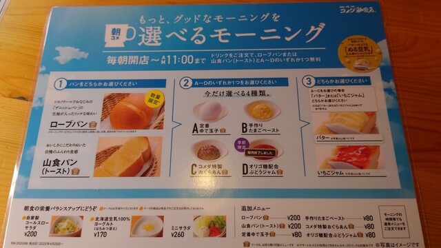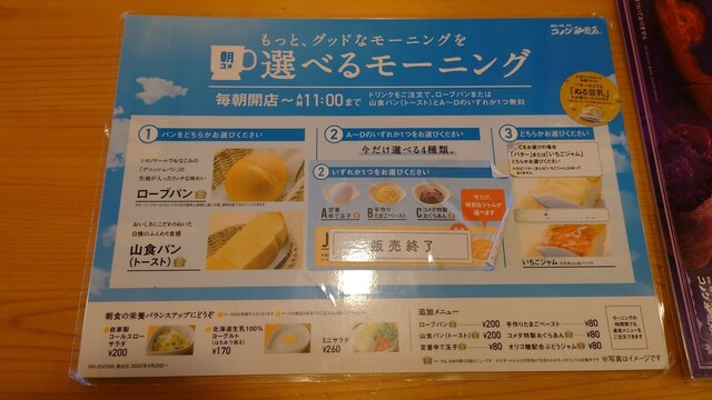 もう一つは、モーニングに追加出来るメニューとして以下の物が増えてました