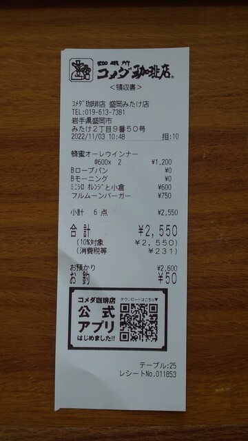 コメダ珈琲盛岡みたけ店50回目のレビュー
