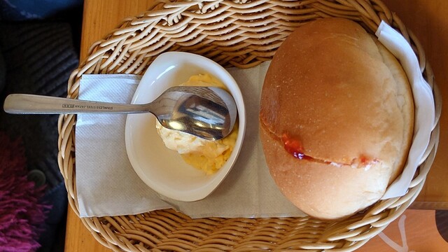 ※母…ミルクコーヒー540円、モーニング(ローブパン+手作りたまごペースト+いちごジャム)