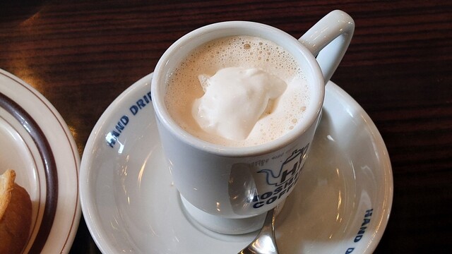 ウインナーコーヒー(ホット)520円、厚切りトーストとゆで卵のモーニングセット
