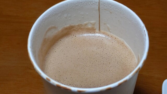 しばし待ちまして商品を受けとりますが、既にカップ越しでも熱々ですね(*´ω`*)