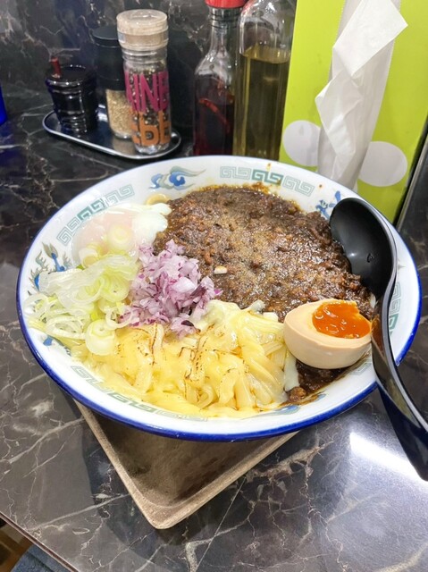 麺、カレー、チーズやレッドオニオンなどのトッピングすべてが計算し尽くされた至高のまぜそばとなっており、食べれば食べるほど、もっと食べたくなるようなラーメンです。