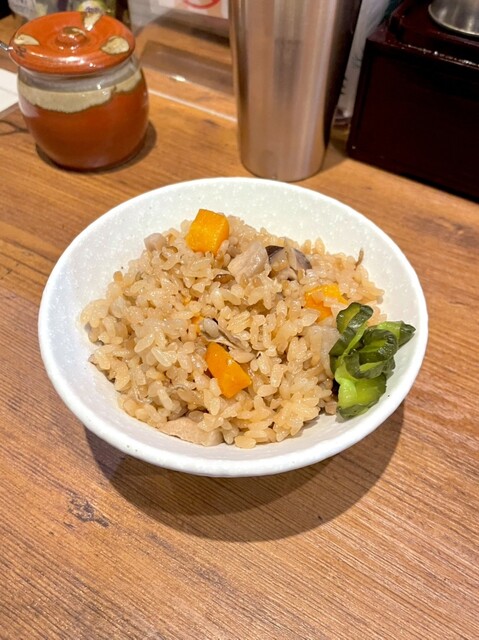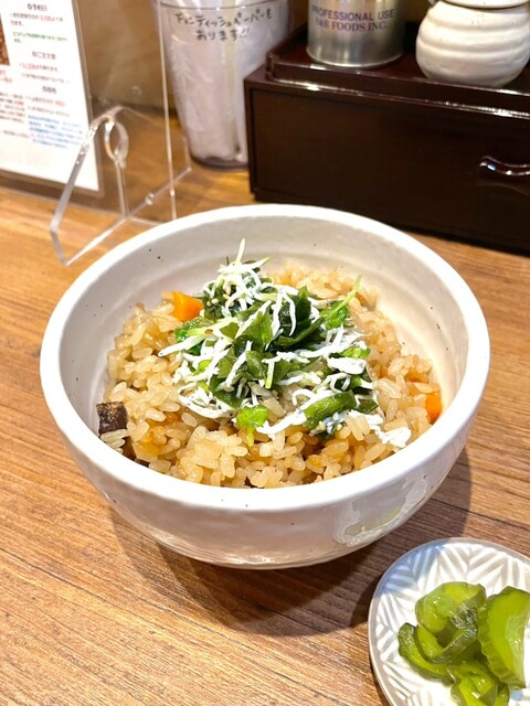 煮干しとあぐー豚の旨味が凝縮した器にご飯を入れると、これまた文句なしの絶品です。