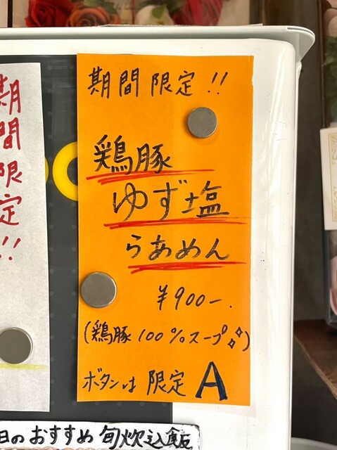トッピングには、あぐ一豚モモ肉チャーシュー2枚、白ネギ、バラ海苔、桜塩漬け、国産レモン、パルミジャーノレッジャーノチーズなどが乗せられており、春らしく桜の塩漬けが添えてあるところに岡部店主のセンスの良さを感じさせます。
