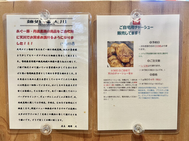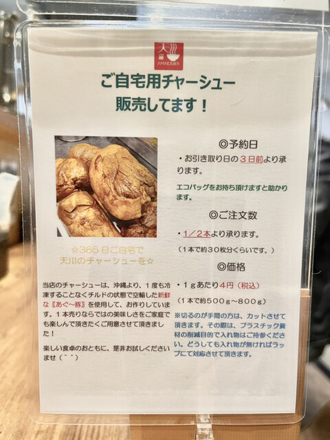 しかし「麺処 天川」で年末、アグー豚焼豚(1本)を数量限定販売されてたいたので予約しました。