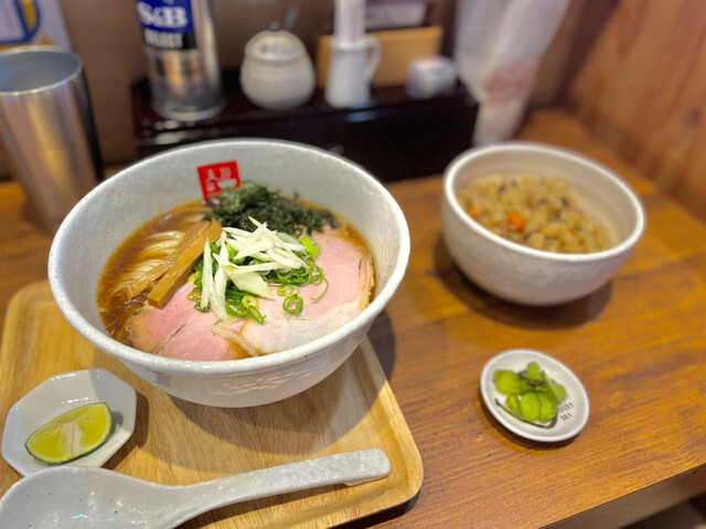 スープは鶏ベースの魚介醤油味。
