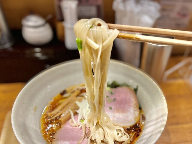 水魚のごとくスープと交わり、しなやかな伸びで喉越しが良く、放たれる艶やかな小麦の香りが鼻腔をくすぐります。