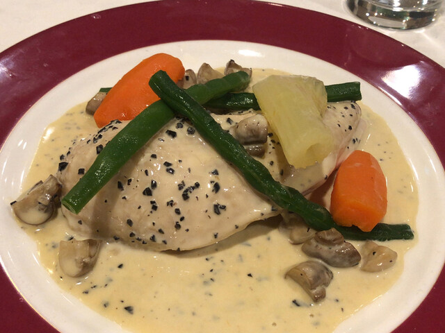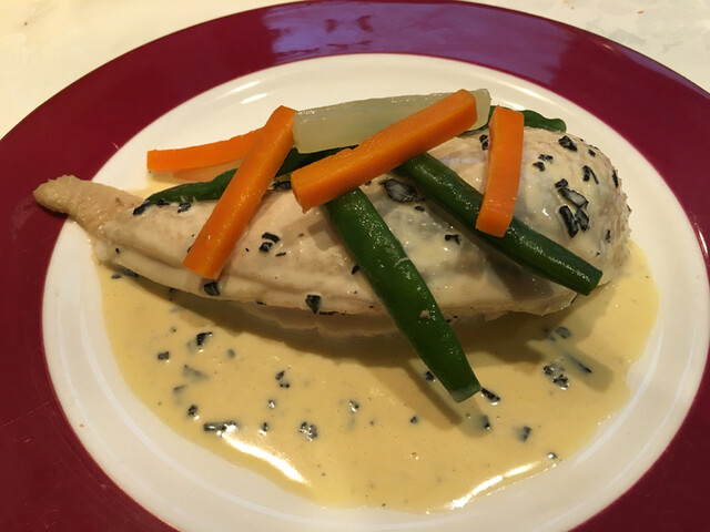 初めて食べた時は胸肉にスライスしたトリュフを差し込んで茹でていたのですが、翌年はトリュフを胸に差し込むのをやめ、その代わりにクリームソースに刻んだトリュフをたっぷり入れるようになりました。