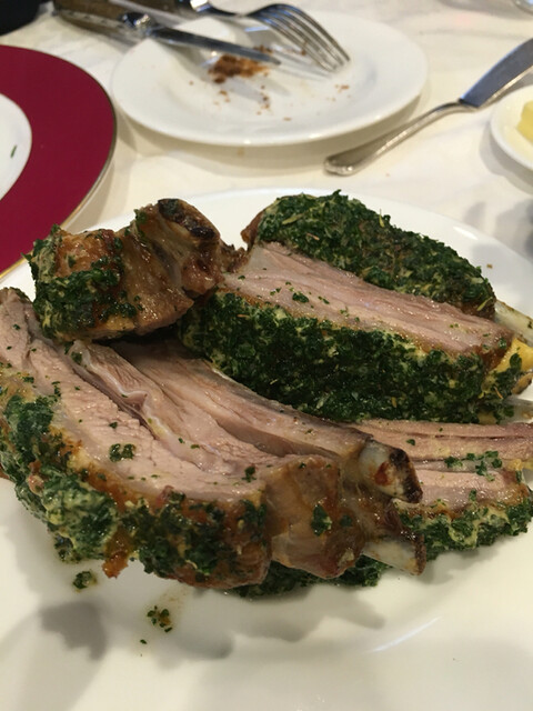 また、肉は未食だった鳩を、冷前菜も未食だった豚足のパン粉付け焼をチョイスして、食べたことのないもの尽くしにしました。