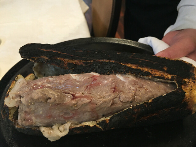 ④…仔羊の岩塩包み蒸し焼き(スペシャリテ)、牛イチボ、牛ランプ、ドゥミドゥイユ(冬)、コルヴェール(冬)、鹿(冬)、豚、鳩