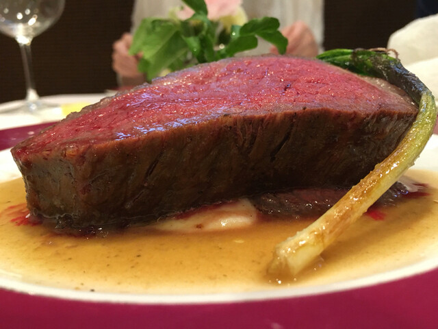 最近までジビエをやっていたので、鴨肝を使ったソース。これもこの時期だけなのかな?やや酸味の効いた赤ワインソースに、深みと複雑さを増しているような感じ。美味しい…!