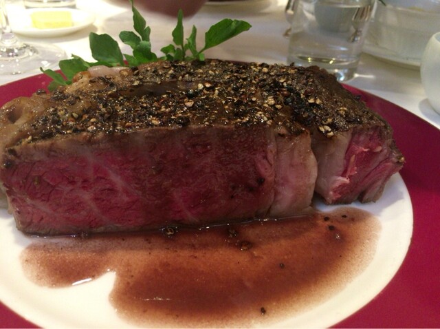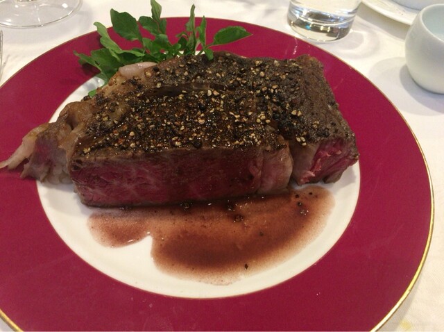 リブロースのステーキ。このお皿だけで500グラムは超えるボリューム…
