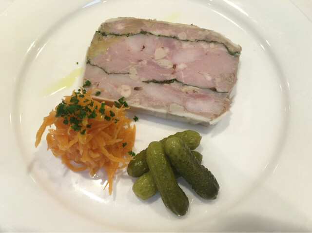 豚足の詰め物は、豚足らしさをしっかり感じることができ、旨味が凝縮しています。付け合わせの野菜も文句なく美味しい。前菜にぴったりの一皿でした。