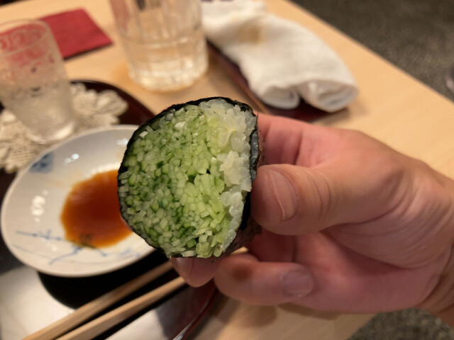握りも江戸前の赤酢主体のものとは一線を画す酢飯で、握りは手数が本当に少なく柔らかく握られており、口の中に入れた瞬間にほどける感覚は他店を圧倒します。