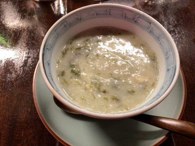①中華粥(佐越の牡蠣、岩海苔、生姜)
