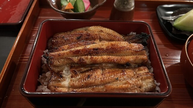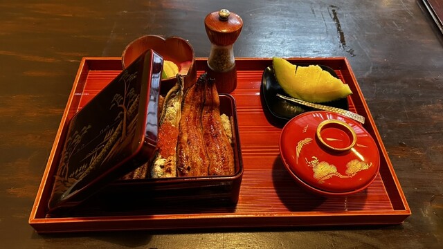 開店10分前に到着。平日の為列の二番目に並ぶ。基本電話予約優先の様だが、開店と同時に座敷席に案内される。メニューからうな重「色」を注文。関東風か関西風か選べるようで手堅く関東風でお願いした。10分足らずで供される。思ったより大分早い。今日のうなぎは愛知三河産の養殖もの。うなぎの風味が濃厚なので最初のひと口は山椒をまぶさず頂くようにと説明があった。提供するうなぎへの自信を感じる。肝吸いをひと口啜り、うな重と対面。アドバイスの通りそのまま頂く。箸でひと口大に身を崩す。まずはうなぎだけ口に運ぶ。香ばしい香りを鼻腔に感じながら咀嚼。うん、ふっくらとした端正な味わいの身に適度な甘みのたれが上品に交わる。そしてやや遅れて皮目の香ばしい香りと食感が楽しい。単純に美味しい。ご飯と共に味わうと最高のマリアージュ。うなぎ、たれ、ご飯のC Major コード。食べながら楽しくなる。浜松や都内の銘店と比べても遜色ないどころか優っているんじゃないか!半身をあっという間に平らげ、残りは味変と言うか山椒をまぶして頂く。山椒の香りがたち爽やかな味わいに変わる、が山椒なしの方が個人的には良かったかな。鰻の質が良いから薬味が要らない感じ。たれもむやみに甘くなく、うなぎの美味しさを引き出しつつ、更に味わいを高めている。合間に肝吸いや香の物を挟み平らげる。肝の苦みも良いアクセントだった。添えられたメロンにほのぼのしながら口直し。次回は関西風で頂くことにしよう。