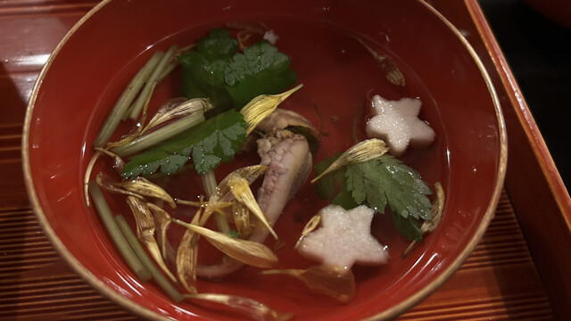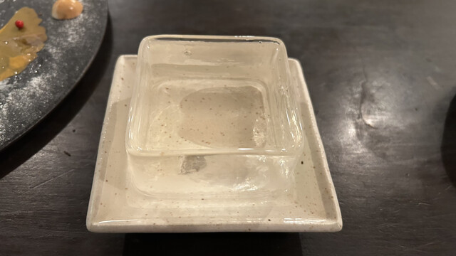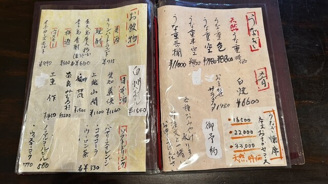 18時の予約でやや過ぎた頃伺う。名前を言ってないのだがお待ちしてましたと奥まった6人がけのテーブルへ通される。一人でデカいテーブル席に殿と腰を据える。メニューとお茶を渡され、透かさずイチローズモルトのハイボールを注文。ドリンクが来るまでに今夜の構成を考える。おっ、イチローズと一緒に運ばれて来た酒のつまみがグレードアップしているじゃないか、今までは骨せんべいだけだったが鮪の赤身が添えられている。夜はこうなのかな。イチローズをちびちび飲みながら骨せんべいを齧る。夜の帷は既に落ちているが窓の外は灯りに照らされた緑が映る。良い時間の流れだ。1杯目のイチローズが無くなる頃白焼きが届く。愛知三河産の鰻だ。一服の絵画のように散りばめられた白焼き。思わず見入ってしまう。見入る為に顔を近づければ炭で燻された香ばしい匂いが鼻腔を擽る。白黒の世界に赤山椒がはっとする緊張感をもたらし、箸で崩される一歩手前の宇宙の完璧さを保つ。お代わりしたイチローズを一口飲んで落ち着く。いきなり白焼きに行くのはこの秩序に相応しくなさそうだ。徐に手前の銀杏の殻を外して口に放り込む。銀杏の風味を味わいイチローズで口の中を整える。意を決して一口大に切り分けられた白焼きをそのまま食べる。皮目の香ばしい風味が広がりホクホクの身が優しく脂を包み込む。なるほど、こうしてこの絵は昇華してゆくのか。赤山椒を身に乗せて塩を付けて頂く。赤山椒の熟れた旨味が白焼きと混じり合い3Dの様な立体感をもたらす。イチローズも良いが、ここから先は日本酒の出番だな。どれどれ、清水清三郎商店の「作」があるじゃないか、すみませんと声をかけ「作」のどんな銘柄が置いてあるか尋ねると一升瓶を持って来てくれた。「作 和悦」とある。一度飲んでみたいと思っていたから一合頂く。フルーティで艶やかだが切れ味がある。旨い、白焼きのベストパートナーが見つかった。一人悦に入る。皿の上の宇宙は今俺の胃袋の中でカオスに変わっている。口の中で起こる超新星爆発的美味しさはブラックホールとなり皿の上の星々を飲み込んでいく、などと馬鹿げた幻想に耽っているとデススターの様なお盆がテーブルに運ばれて来た。いよいよである。盆を鳥瞰する。手前に重が鎮座し椀、香の物、メロンが取り囲む。山椒が凛と佇み出番を待つ。重の蓋を開ける。すぐに香ばしい匂いが鼻に流れ込んでくる。良い照り具合の蒲焼が目に入る。またもう一つの宇宙が現れた。山椒をかけずそのまま頂く。白焼きと同じ三河産、口の中に皮目の香ばしさと身の柔らかい旨味とタレと混じり合った脂が渾然一体となって渦巻く。大将渾身の焼き!美味過ぎるでしょう、そのまま黙々と半身を食べ尽くす。残り半分となったところで山椒を振り掛ける。もう一つ別の香りが加わり華やかさを添える。味も締まった感じとなり、脂の旨みに奥行きを感じる。そして、右手と口をフル稼働しただひたすらに味わう。ちょっと冷めた肝吸いを啜り、デザートに添えられたメロンで落ち着く。メロンを味わっても先程までの味が舌に残像となっている。あぁ、鱈腹喰った。超絶満足至極!今夜は鰻を中心に広がる宇宙を堪能した。会計を終え店を出る。アプリで呼んだタクシーが見えた。さて、帰りますか、ご馳走さまです♪♯♯♯