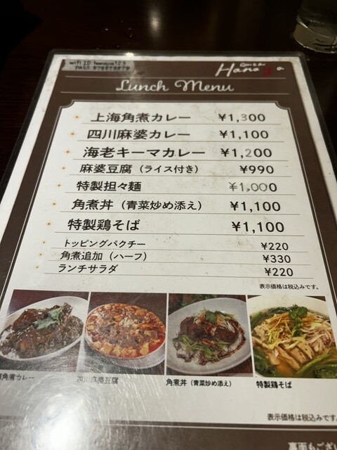 朝イチからの映画鑑賞終わり、丁度昼時だったので以前から気になっていたGrill & Bar HANAYAさんへ。12時20分頃お店に到着。お店の看板横の狭い階段を地下に降りてドアを開く。テーブルが左右2卓づつと奥に調理場と向かい合わせてカウンターが5席くらいか。先客は男女カップルと単身男性。皆さん上海角煮カレーを食べています。ひとりだかカウンターの女性にテーブル席に座るように案内される。女性店員1人で切り盛りしているようだ。お水とスプーンのセットを席まで運んできた際に上海角煮カレーをオーダー。10分程待ったがその間に女性の1人客が二人と男性客が一人来店。ワンオペだが手慣れた様子で捌いている。さて上海角煮カレーだが見た目は皆さんの写真ほどフォトジェニックな盛り付けにはなっていない。ご飯は200g以上ありそう。そこそこ盛りは良い。その上にやや緑がかったカレールーがかかり背徳的に大きな角煮が鎮座する。彩にパクチーが一つ。ルーは片栗粉てとろみを付けているのか独特なテカリを感じる。味はスパイシーでなく、中華屋さんのカレー風。だがこの味が角煮の脂身に合う。サラッとしたルーに角煮のコッテリ甘辛い煮込まれた味が融合しお米のベストパートナーとなる。これは新しい味わいだ。口直しのパクチーも福神漬けより確かにありだ。歌舞伎町のフュージョン中華カレー、他のメニューも試したくなった。