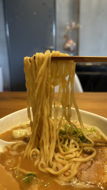 ラーメンカフェ週替りは「白味噌ラーメン990円」。さて、何でラーメンカフェで提供されるチャーシューを勝手にグラヴィティチャーシューと呼ぶのかというと、もしニュートンがリンゴが落ちるのより先に、箸でこのチャーシューを摘んだら重力で持ち上げ続けられず徐々に下がってしまう現象からきっと重力を発見したに違いないと、これは歴史上の逸話を根本的に塗り替える事態になると確信したからだ。恐るべし、重力チャーシュー!そして今、目の前の白味噌ラーメンにも重力チャーシューが鎮座しているではないか。それも端っこを切り分けた大型!この厚みに着目せよ!写メに撮るために片手で持ち上げ続けるだけで筋トレになるではないか。そして今日はシナチクもでかい。でかいけど柔らかく炊けており美味しい。チャーシューもシナチクも見かけに寄らず柔なのだ。ここには嘉納治五郎の柔の精神が垣間見れる、大将が柔道やっているかは知らんが…そしてそれらの具材を受け止める白味噌のスープはややしっぱい。だがまあ許容範囲だろう、完璧ではないが。ただ今日は冷えて味噌ラーメン日和。熱々のスープと麺は身体に染みる。鼻水垂らしながらあっという間に完食してしまいました。結構ニンニクも効いているな。ご馳走さまです♪