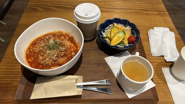 長男が唐突に会社を辞めて1年間留学というか遊学に赴いたのはマルタ共和国だった。そこを拠点にバルセロナやらパリやらミラノやら色々と出向いた様だが、マルタでは共同生活でイタリア人やらトルコ人やら関西人やらが一緒で、それぞれがお国自慢がてら自国の料理を作って振る舞ったり、教え合ったりしていたらしい。そして帰国した長男が腕を上げたのは語学力だけじゃなくイタリア人の同居人から教えられたリゾットだった。作るのを眺めているとモコミチか!って位ピュアヴァージンオリーブオイルをドボドボ加え、パルメザンチーズも一本丸ごと加え、白ワインも入れる。加減はしない方が良いらしい。そして炊き上がったリゾットなのだがこれが美味いのだ。へぇー、なかなかやるなと思った。レストランでコースの最後にちょびっと出されるのと違って豪快だが、リゾットも家庭料理なんだろう。そして今日の日替りは「シーフードトマトリゾット990円」にブレンドコーヒーSサイズで計1,230円。思ったより早く配膳された。スプーンで掬うと白米が見える。なるほど、白米にトマトで煮たシーフードをかけた様だ。粉チーズの匂いが鼻につく。手際を考慮するとこういう形なのだろうが、これはリゾットではない。ご馳走さまです♪♭♭♭