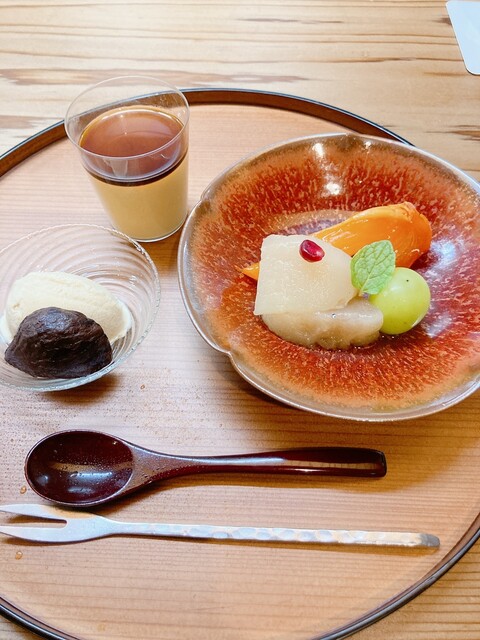 焼物、ずわい蟹をいただき、鮭といくらの土鍋ご飯に。これはとても美味しく、止椀と香の物と共に堪能しました。最後の水菓子には温かいカスタードプリンが添えられていました。