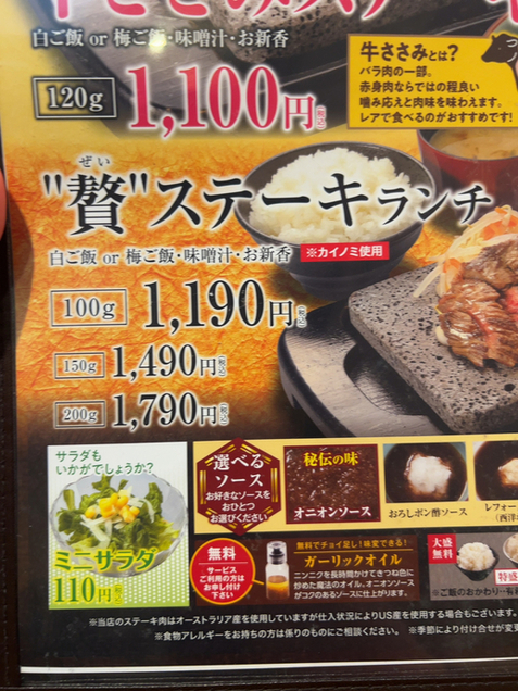 最新の情報とは異なる可能性がありますので、お店の方にご確認ください。詳しくはこちら